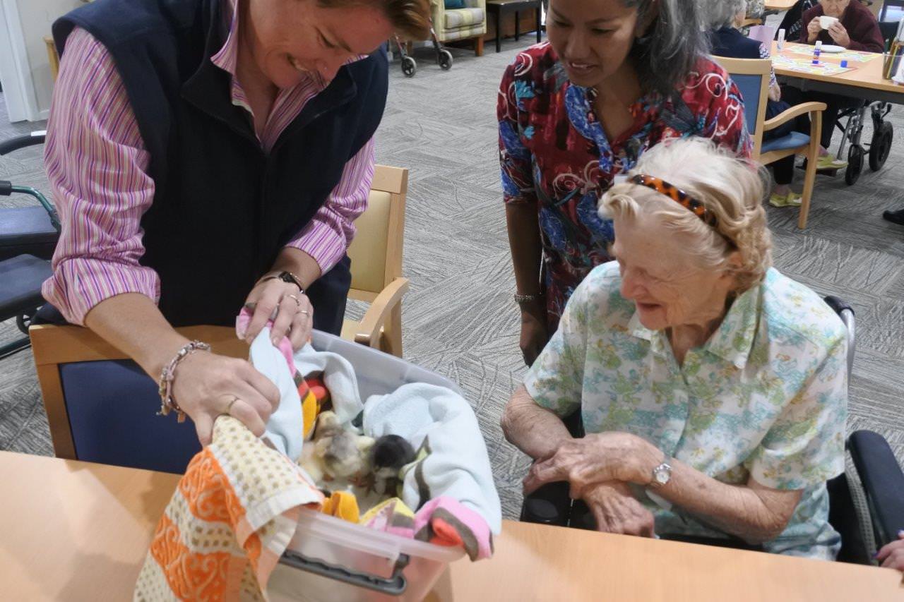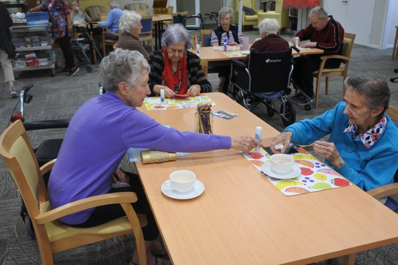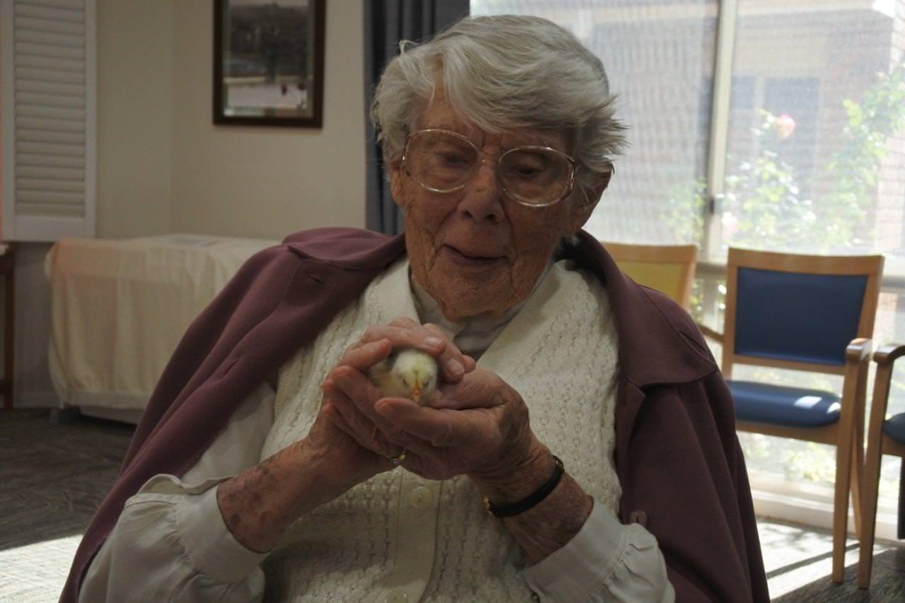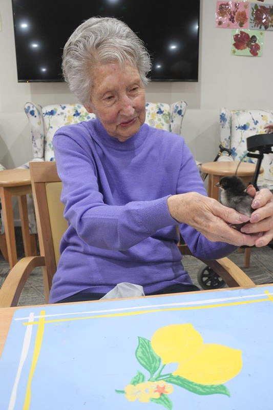 It’s wonderful when your craft activities take place in the company of live animals! Finley residents thoroughly enjoyed a visit from some gorgeous fluffy chicks during their recent craft activities – they did prove to be a bit of a distraction from the crafts, but of course nobody minded one little bit!