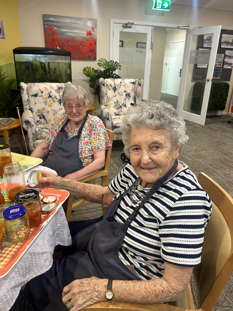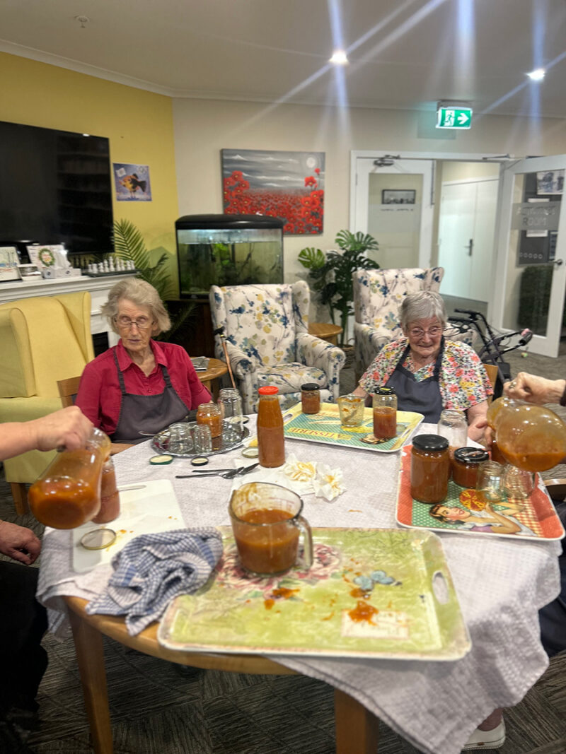 We had some beautiful home-grown tomatoes donated to the facility and Chef Lisa created a beautiful relish (with help from our residents), which can be found in all the house dining rooms at mealtime. The crafters created gorgeous handmade labels to put on our relish jars, and they look and taste fantastic!
