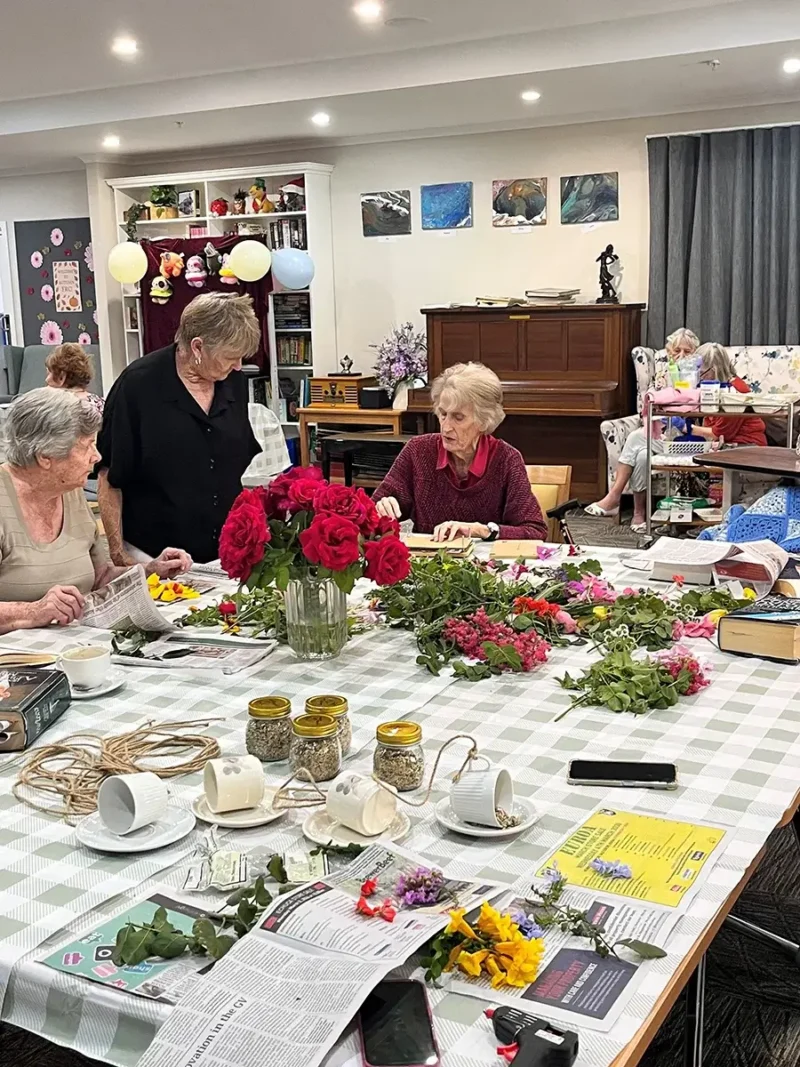 We were very busy hosting an Autumn-themed activities afternoon where we had a lot of different events on show for our residents! These included a pop-up coffee and cake stall run by our wonderful receptionist Isabella and a carnival game stand where the residents could try a game of Quoits (and a lot of residents won beautiful plush toys)! Our amazing volunteer Wendy was busy manning the Relaxation Station, where the residents could have a foot bath, a pedicure or even a foot massage! And finally, we had a craft corner, where we made bird feeders and tried our hand at flower pressing with gorgeous flowers donated by our very own Paige and her family.