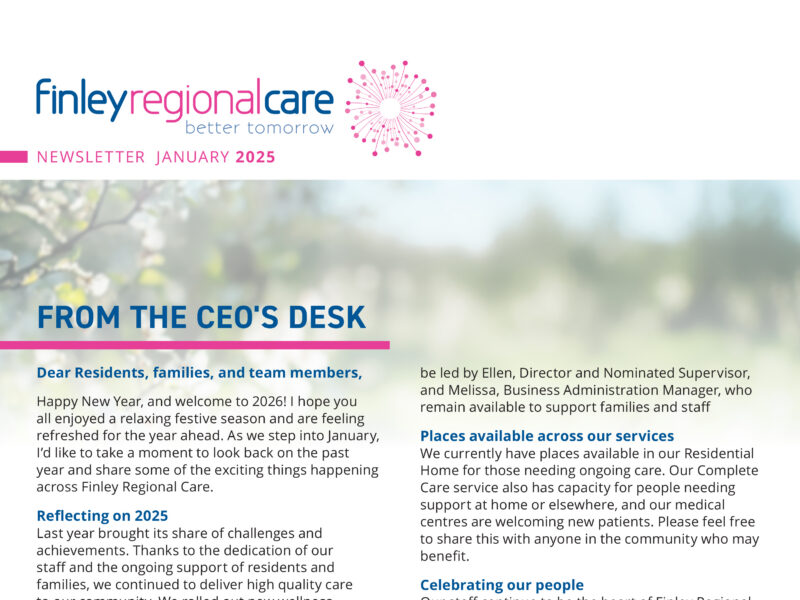 One of the most impactful changes from the recent Aged Care Reforms has been the final decision by the Fair Work Commission to increase wages for aged care workers. Effective from January 2025, these increases will provide much-needed recognition for the commitment and hard work our staff demonstrate every day. At Finley Regional Care, our team is the backbone of our organisation, and this increase is a well-deserved acknowledgment of the vital role they play in delivering the best possible care.