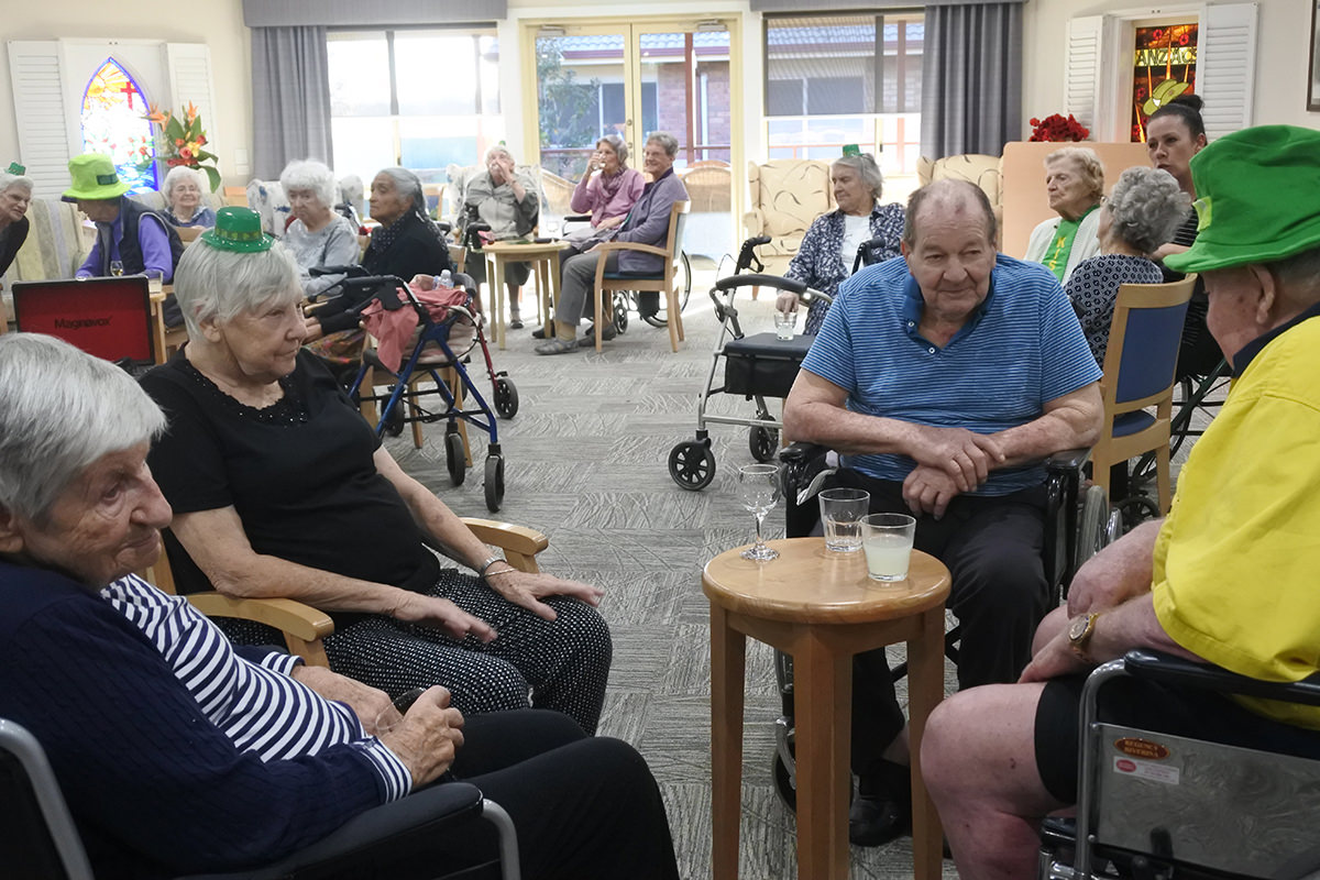 Wednesday afternoon wine and cheese is a regular event at which attendee numbers are growing exponentially (word is getting around!). This event usually takes place after a lovely garden walk, but with the cooler weather, residents are opting to skip the walk and just get straight to the wine and cheese. They’ve also been enjoying listening to old records, including some with Irish ditties. This led to us dragging out the items we use on St Patrick’s day and celebrating it all over again!